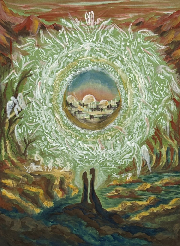 Heavenly Vision, gouache on wood board, 2025